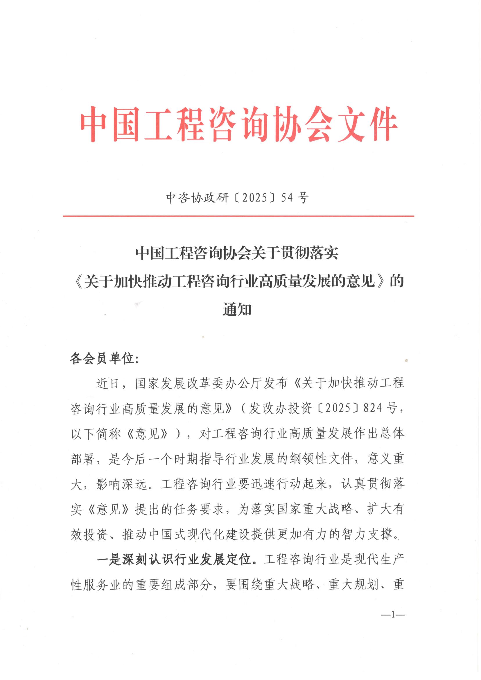 中国工程咨询协会关于贯彻落实《关于加快推动工程咨询行业高质量发展的意见》的通知